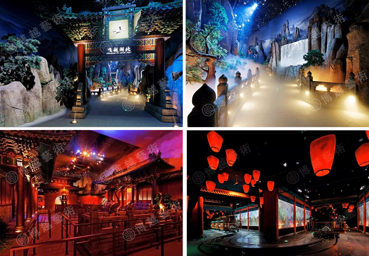 Of course, the “thing” blending into the scene does not only refer to the cultural relics on display, but also refers to stories and themes. In this sense, the market coverage of art scene design and production is more extensive, and conforms to the needs of cultural tourism and commercial publicity. The interactive theater project of Wuhan Wanda Movie Park jointly built by us and American FORREC Design Company was completed in 2014. In this project, we considered more about how to comply with the needs of tourism publicity in the business scene, to maximize the interest and artistry, and to attract audiences of different ages through sound, light, special effect processing and other ways.