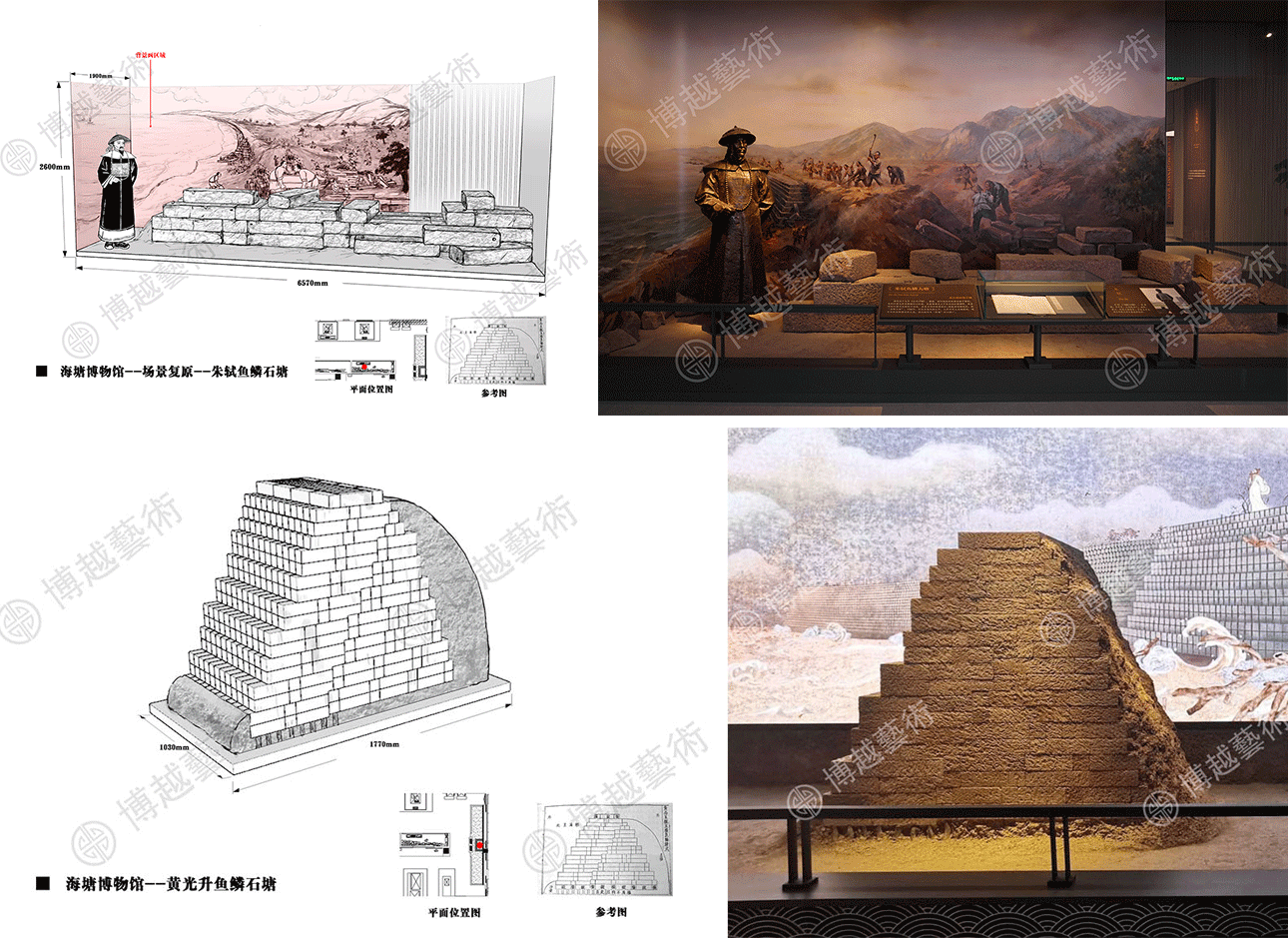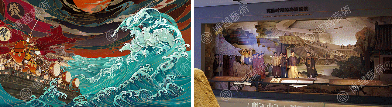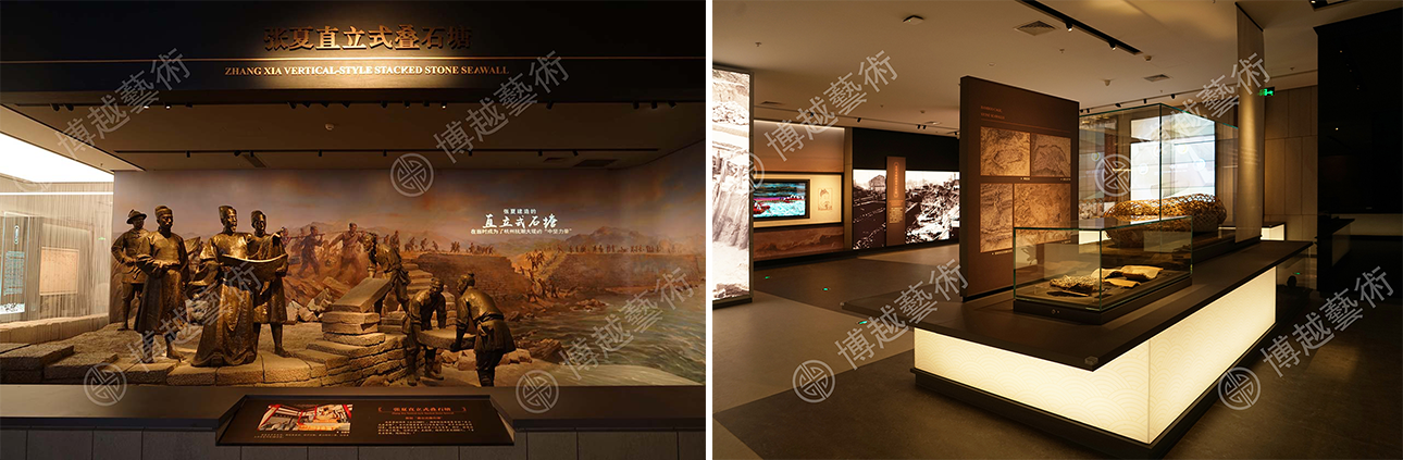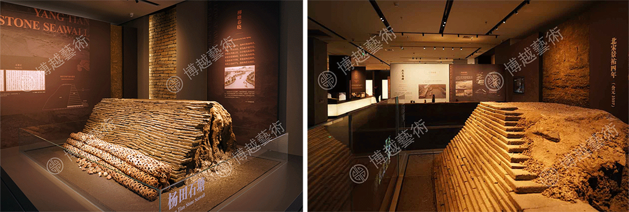 In 2019, a series of themed scenes and exhibits were made for Museum of Seawall Site of Hangzhou by Shanghai Boyue Art Institution Co.,Ltd. With the exquisite scene and model display, the ancient seawall along Qiantang River of Hangzhou area gradually fades its surface dust and sand, revealing its own magnificent splendor.