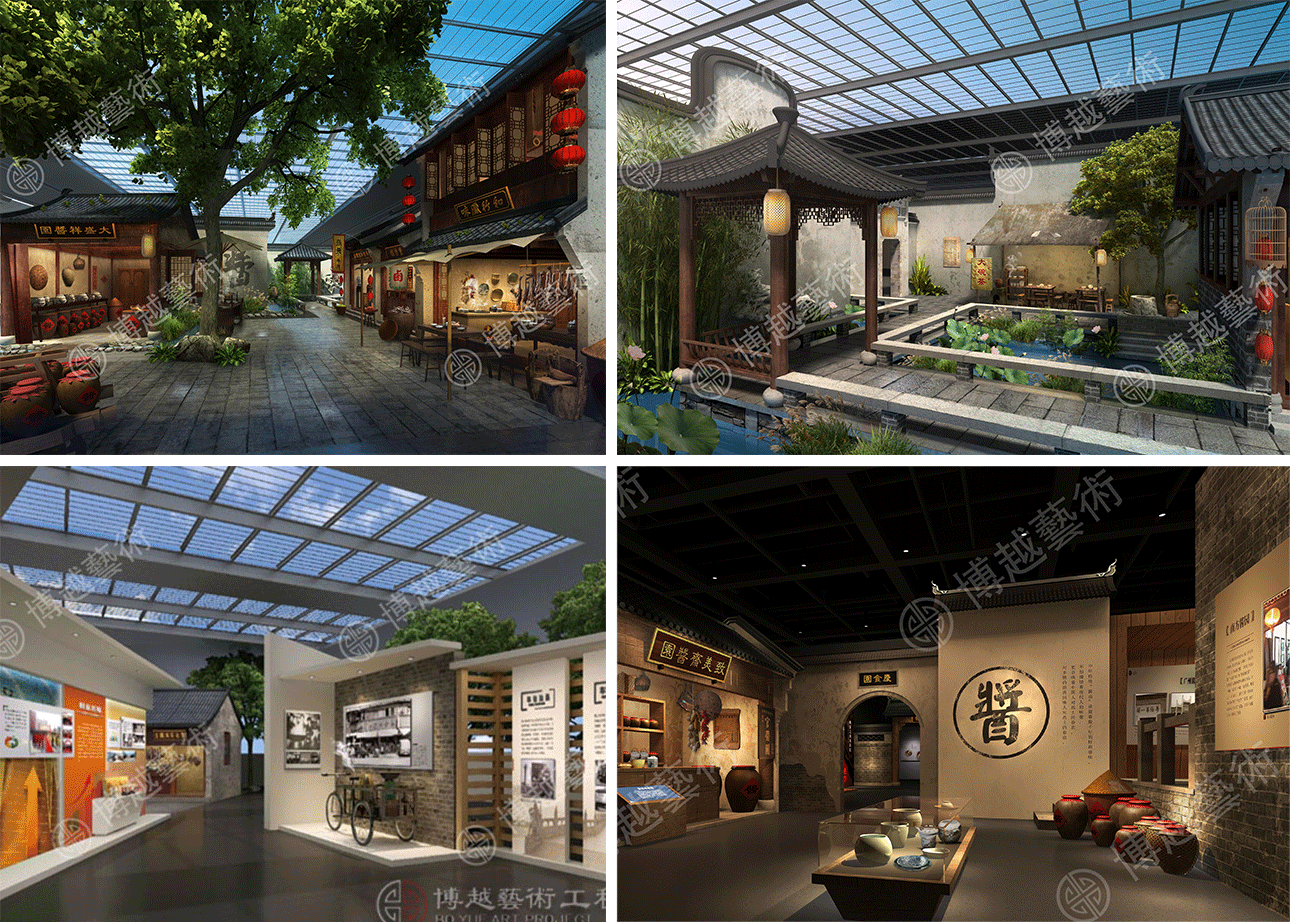 2016年6月公司承接了中國醬鹵文化博物館整體規劃設計,對中國醬鹵歷史文化以及發展進程進行分析,設立“醬鹵溯源, 魂魅天下”,“ 醬鹵風騷,精彩藝術”“ 煌上煌,美食體驗”三大主題展區。為了營造 “綠色”、 “自然”、“休閒”的博物館氛圍,將原建築格局重新規劃,在過渡區域採用全景玻璃採光手法、寫意園林造景設計,結合綠色植物流動水渠點綴,打造詩境般小橋流水人家的室內宋代古街場景。在展出形式上,運用聲、光、電多媒體技術手段與場景有機地組合,讓觀展者多維度瞭解中國醬鹵文化。