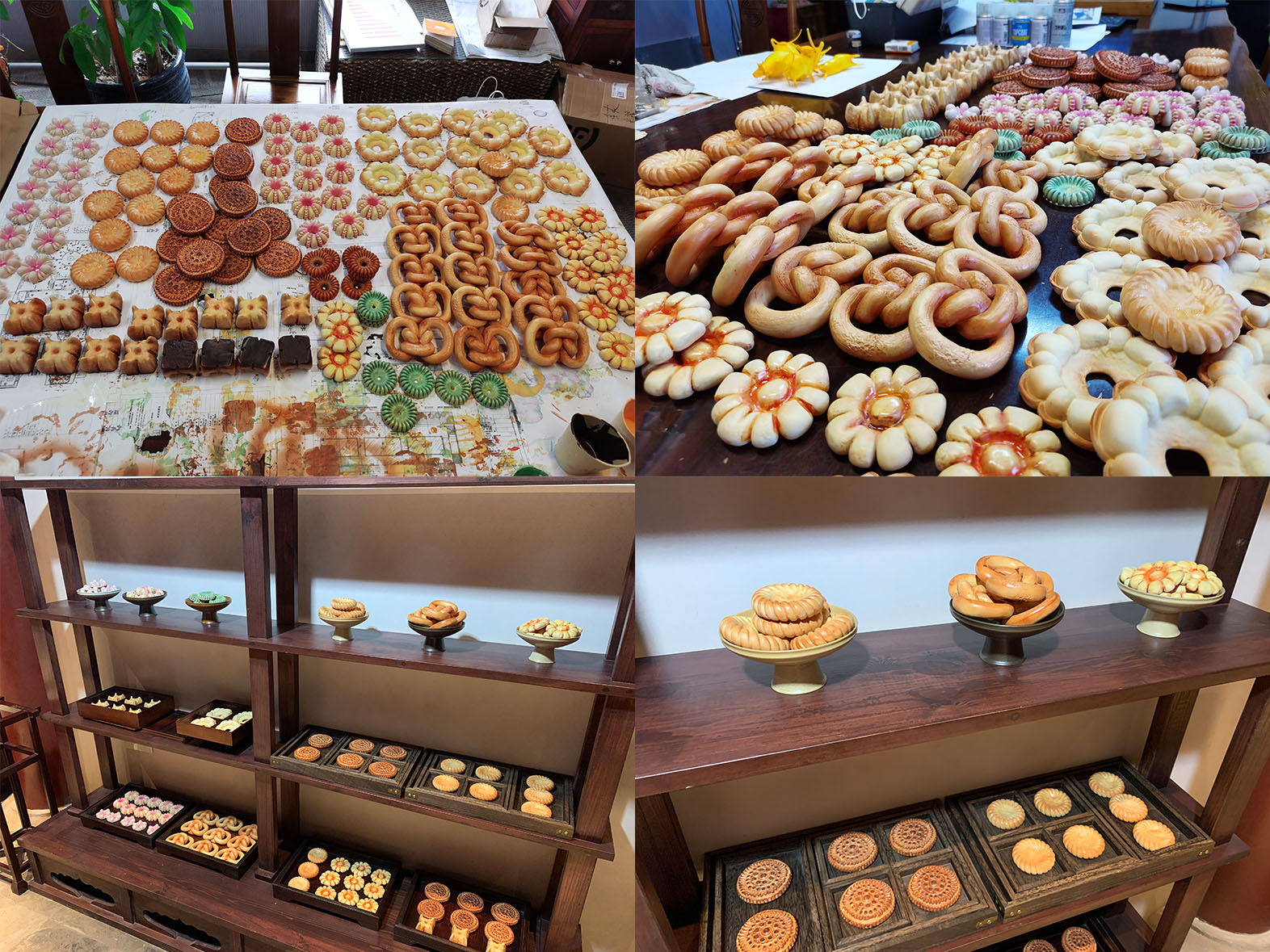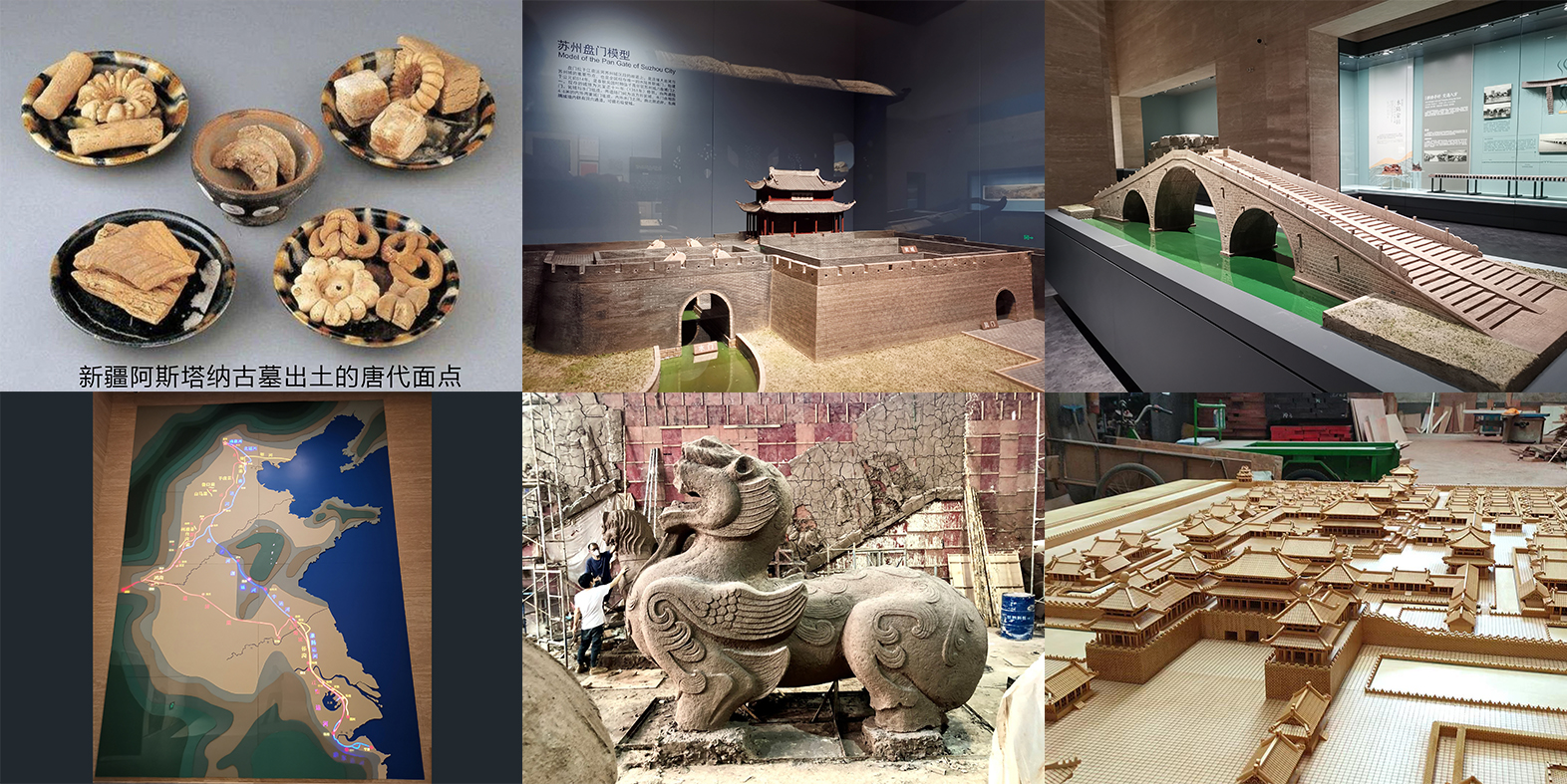 除此之外,設計團隊還承擔著重點道具的製作工作。“因運而生——大運河街肆印象”一層展示區,錯落排列著燈籠鋪、香鋪、酒樓等數十個不同時代的街坊商鋪。設計團隊為其製作了一批精緻生動、幾可亂真的展品,為參觀者開啟了一場穿越唐、宋、明、清的時空之旅。以唐代果子鋪為例,設計團隊根據考古出土的唐代點心,繪製了蓮花餡餅、縷子膾、赤明香、玲瓏牡丹鮓等多種點心的樣式圖紙,並通過3D列印技術,製作實物白模。設計師們親自上陣,對這130多件唐代點心模型進行藝術化處理。他們親手調製顏料,一點點上色、一層層噴漆,盡心盡力,還原點心誘人的色澤。造型打磨、細節勾勒、光澤營造……設計師們還親自把控展品的每一道製作工序,避免了量產模型的千篇一律,使這些妙趣橫生、令人垂涎欲滴的“點心”,成為了該展區的點睛之筆。