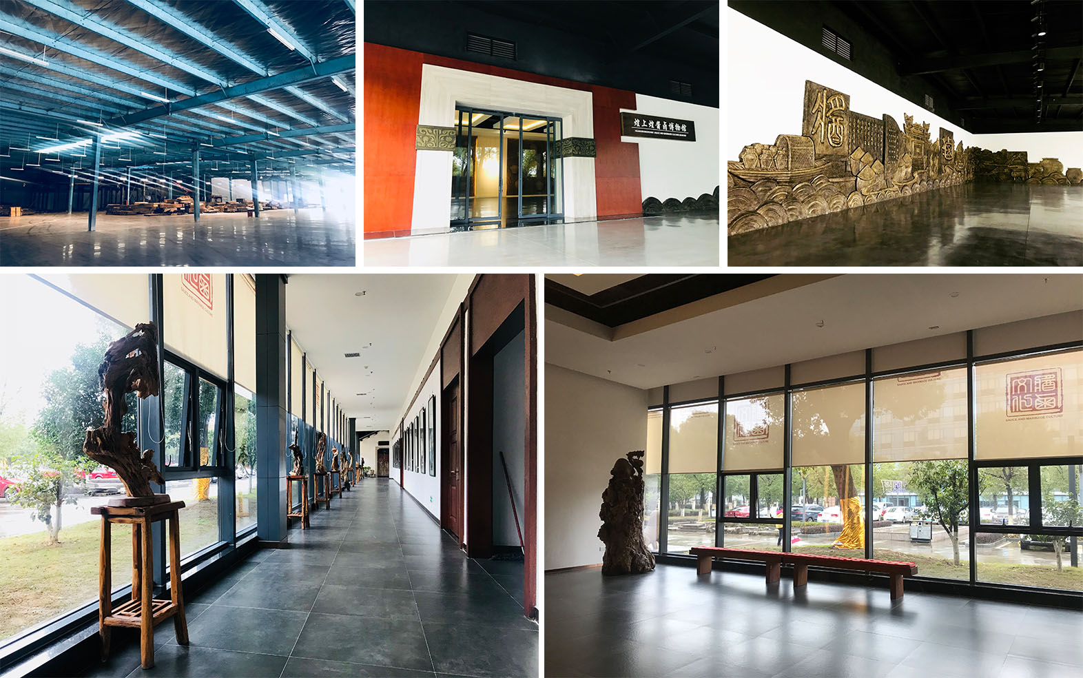 在整館規劃的理念指導下,博越藝術首先對原有建築——煌上煌醬鹵老廠房進行了空間改造,保留頂部鋼架結構,開闢採光天井與中庭,保證了館內的自然採光與明亮氛圍;並將接待空間、展陳空間、公共空間、交通空間等區域合理劃分、串聯,營造自然舒適、內外交通便利的展陳環境。