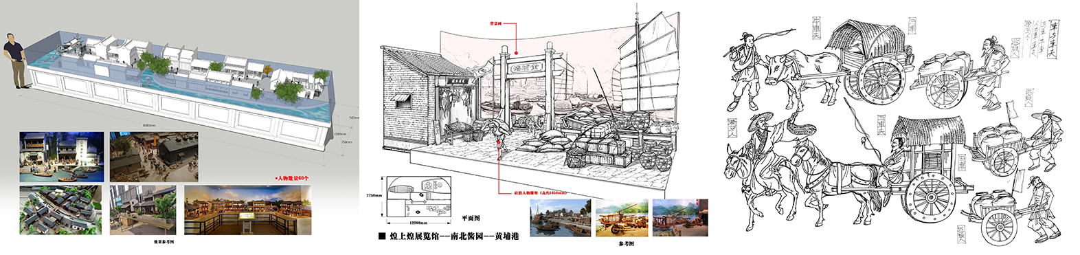 醬鹵的歷史悠久,是中華傳統文化的精髓,更是勤勞智慧的華夏民族所創造的飲食文化瑰寶。博越藝術在深度挖掘醬鹵歷史與煌上煌發展歷程的基礎之上,撰寫了展陳大綱,設立了“醬之溯源,魂魅天下”、“醬鹵風騷,滷味藝術”、“醬鹵之煌,煌上煌”三大內容主題,喚起公眾對“醬鹵老味道”的時代記憶,重塑文化自信。在展陳設計中,博越藝術靈活運用人物雕塑、藝術場景、多媒體聲光電等多種展陳手法,展示了煌上煌醬鹵跨越時代的傳承與革新。黃埔古港醬園碼頭藝術場景、明代江南街景的微縮模型、一比一復原的宋代商貿古街、綢緞莊、鹵肉店、調料店……隨處可見琳琅滿目的醬鹵佳餚,帶領參觀者“穿越千年”,感受中國傳統飲食的歷史溫度與文化底蘊。
