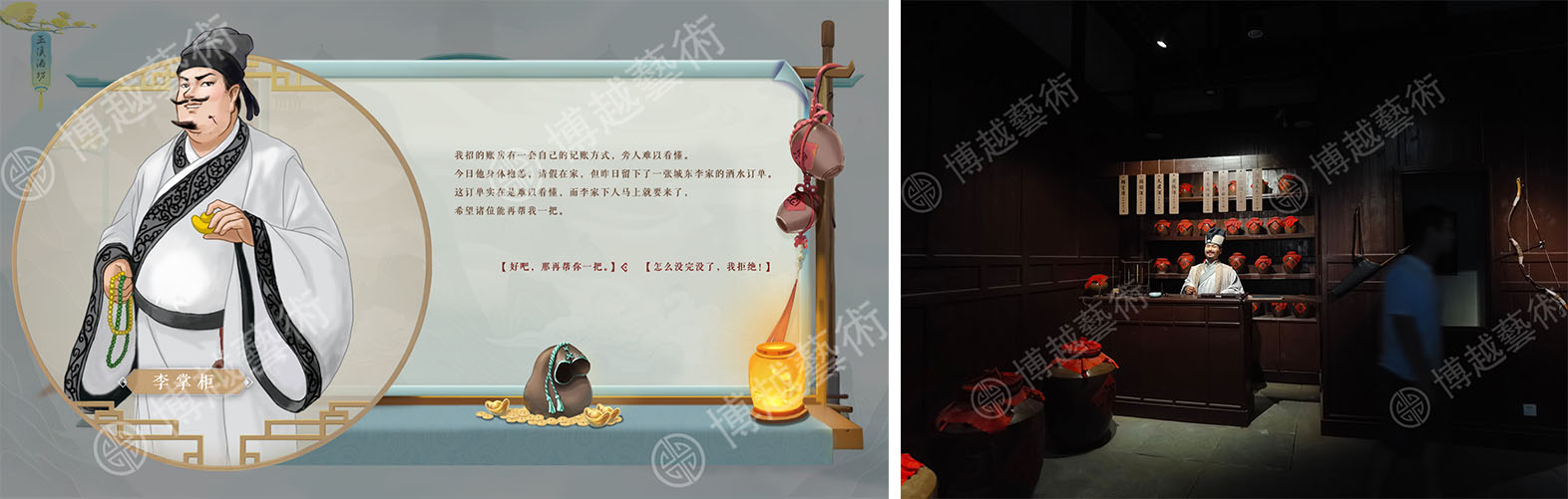圖片說明:多媒體介面、場景中酒坊掌櫃的形象