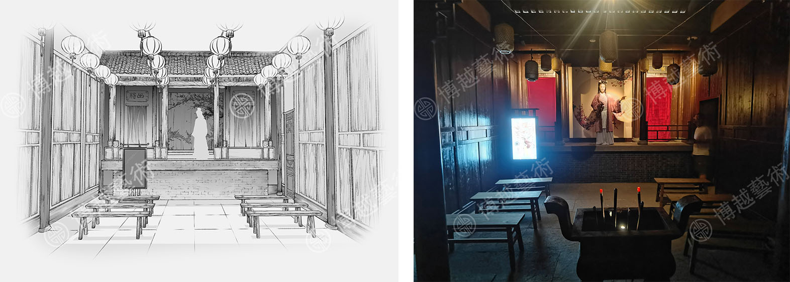 圖片說明:城隍廟戲臺手繪圖、實景圖