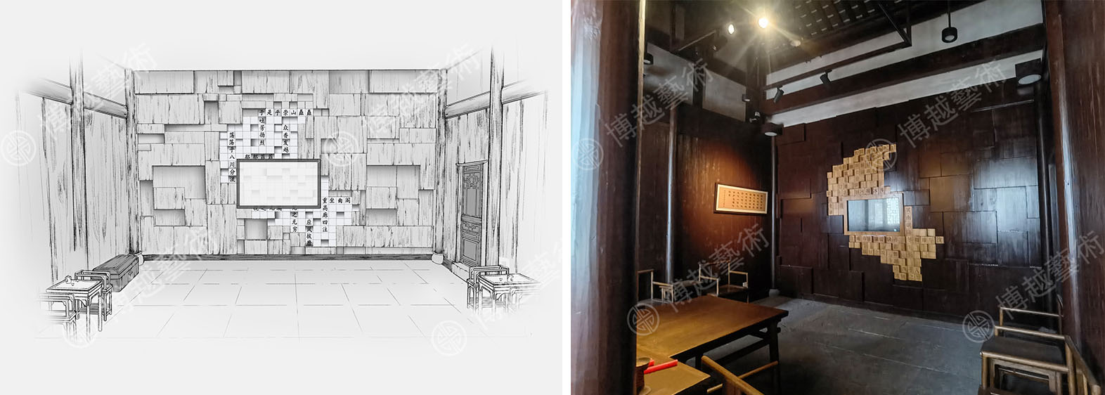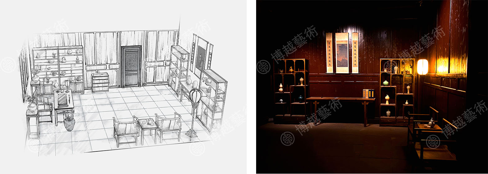 圖片說明:趙府書房手繪圖、實景圖