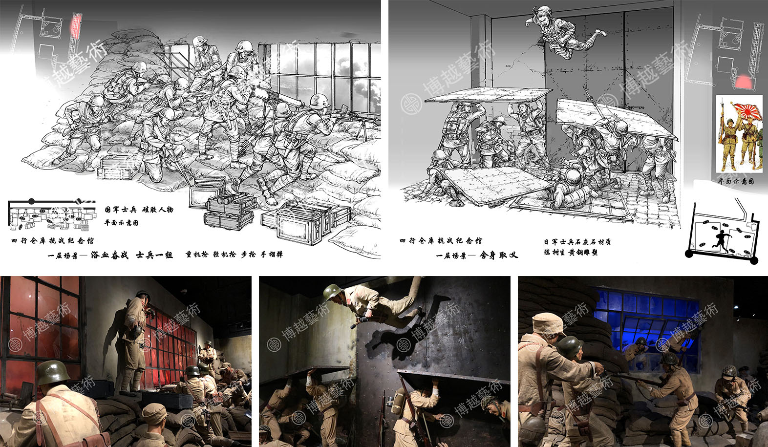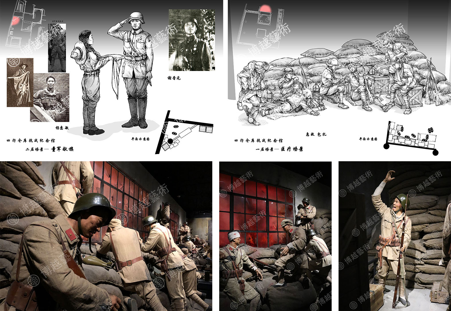 博越藝術深耕文博領域數十年,有幸參與了四行倉庫抗戰紀念館、上海淞滬抗戰紀念館、南方紅軍三年遊擊戰爭紀念館、紅軍長征在四川展覽館、重慶大轟炸“六五”慘案史實展等一系列紅色展館的設計與建設;並始終心懷崇敬,以專業的展陳手法記錄英雄、塑造英雄,讓英雄的精神與血脈得到傳承與發揚。