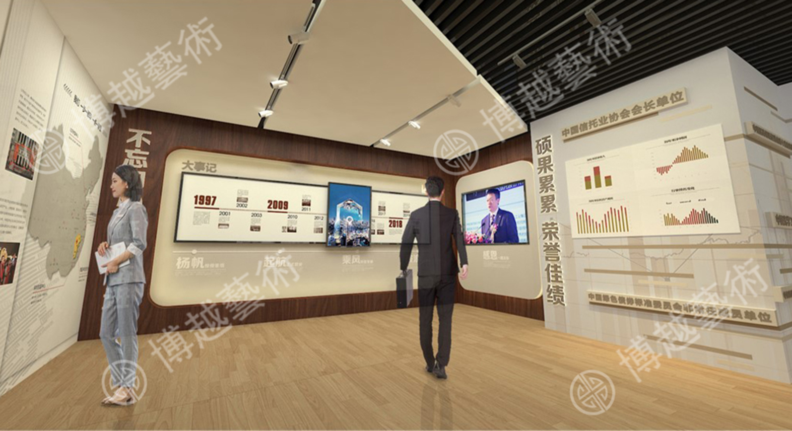 在中航信託企業展示館中,博越藝術發揮團隊最大優勢,將深耕文博行業數十年所積累的經驗彙聚凝結其中,為中航信託傾力打造了提升企業形象的“金色名片”。全新的突破與挑戰對博越來說,也是一次大膽的創新與升級。所經歷的每一個困難、每一次坎坷都將化為我們面向未來、勇攀高峰的勇氣與動力。以此為機,博越藝術將在文博領域持續深耕、潛心成長,為合作夥伴呈現更多高質量、高水準、高品質的展陳佳作。