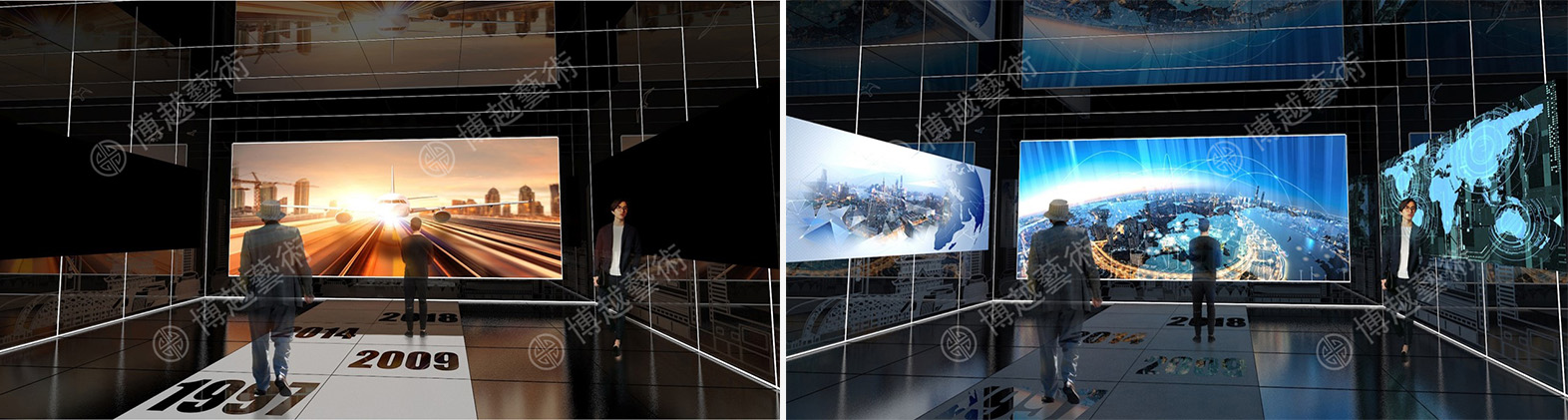 在互聯網及數位化媒體盛行的今天,多媒體技術極大程度地擴展了展廳的內容資訊承載力。面對展廳面積有限,但展示內容豐富的境況,我們以“科技+創意”為展陳核心理念,通過對機械裝置、光影互動、多媒體藝術、AR視效等前沿展陳科技的靈活運用,全力打造了數據共用聯動、多媒體互動中島、沉浸式光影空間等特色亮點,進一步推動了企業展示館的“智慧轉型”,為企業、為參觀者開啟了未來發展的美好畫卷。